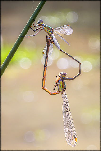 En las imágenes, ejemplares de Chacolestes virides durante la cópula.